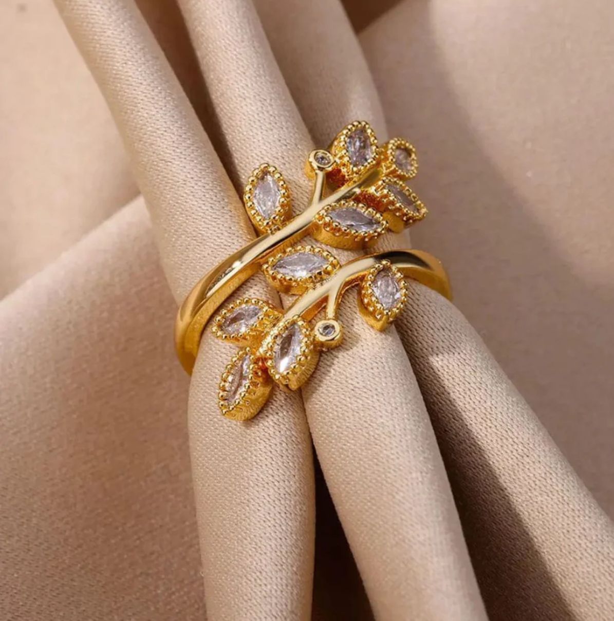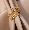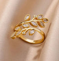 Zircon Double Leaves Ring for Women Anti tranish Gold Plated Adjustable size